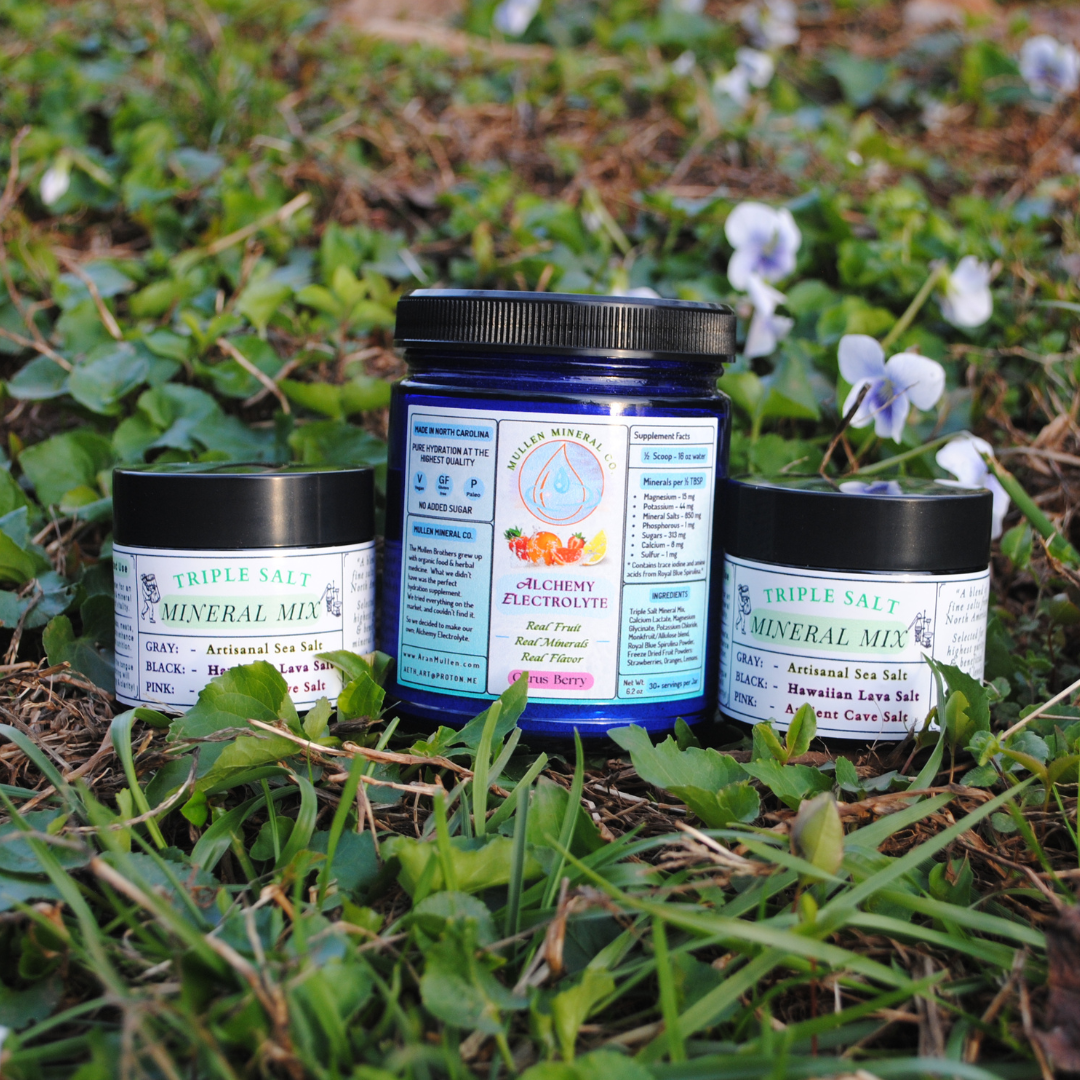 Artisan blend of 3 unique salts from the USA to support detox and remineralization. Includes modern sea salt, ancient sea salt, and charcoal-infused salt.